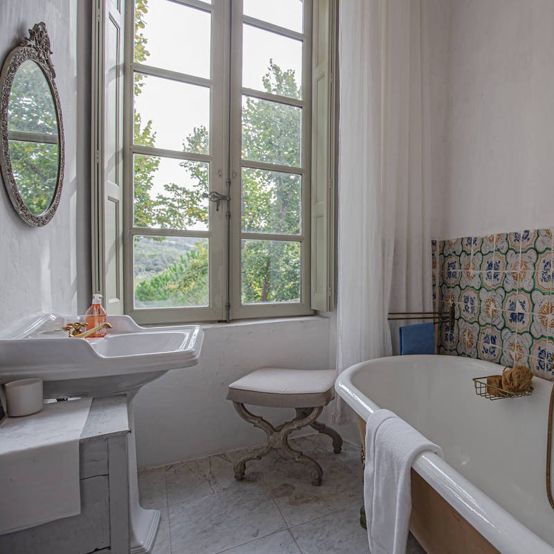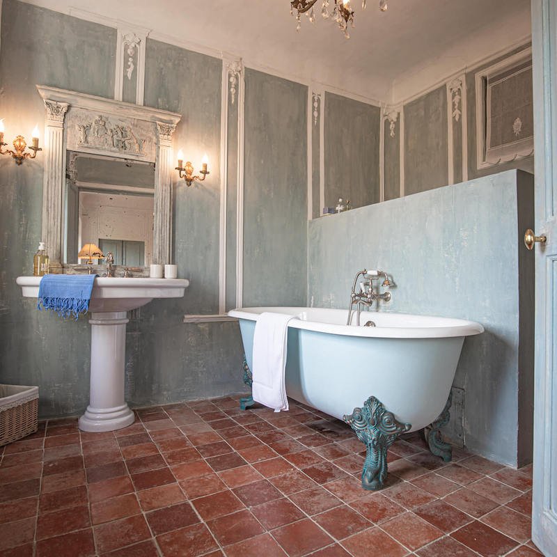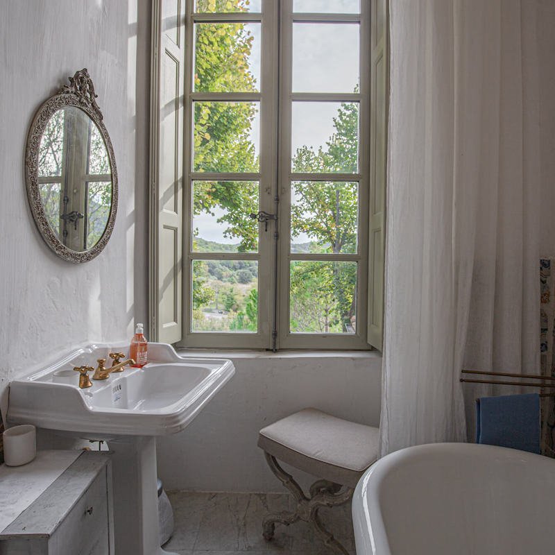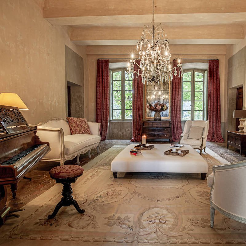 The historic chateau’s beautiful central stairway, 12-foot ceilings, eight bedroom and seven bathrooms, expansive terraces, and private park, make it the perfect rental for a memorable vacation with family or friends.