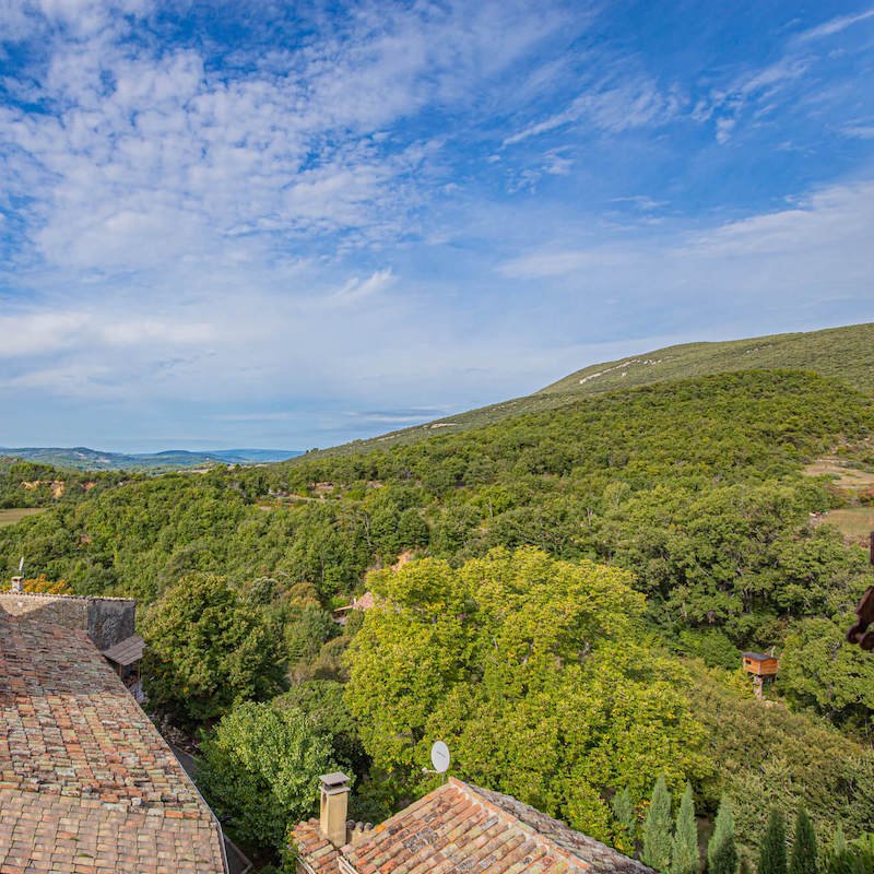 The outdoor terrace has a breathtaking view of the Provençal countryside.