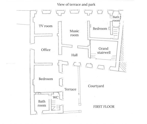 One floor up from the ground floor, guests will enjoy a music room with a piano and sitting room with television.