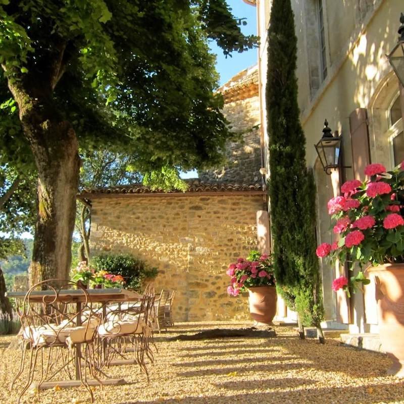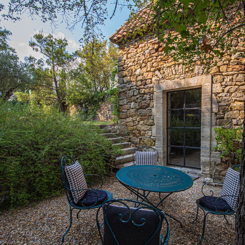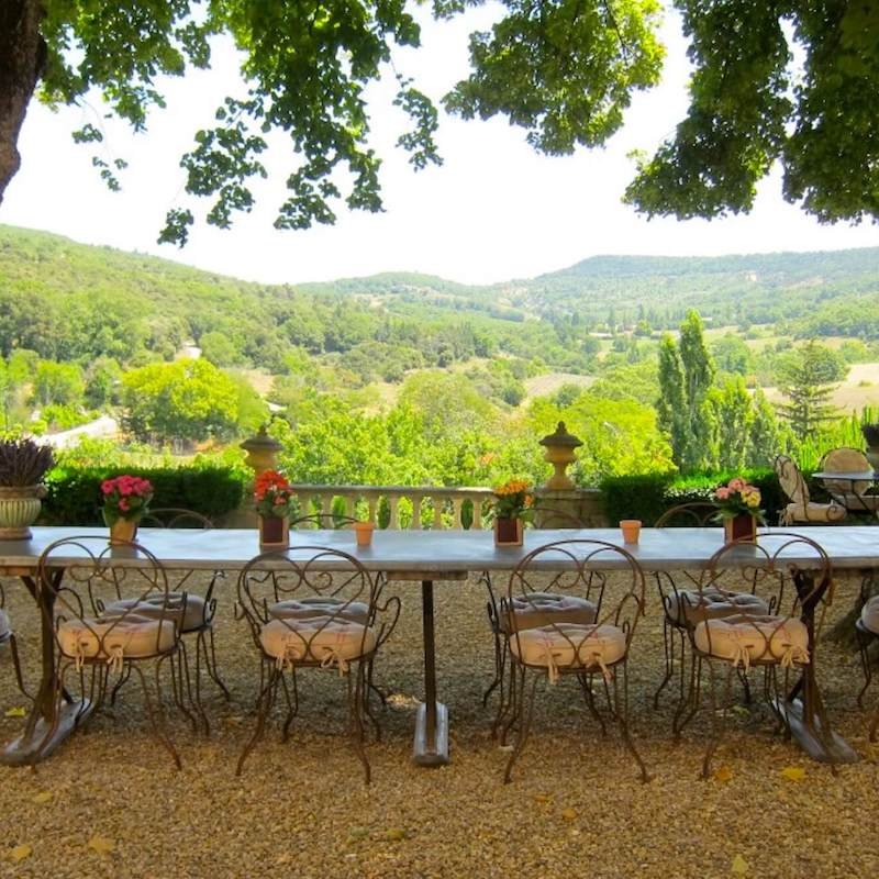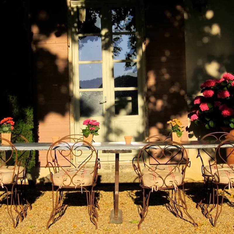 The terrace offers breathtaking views of the Provençal countryside including the impressive coloured Colorado hills.